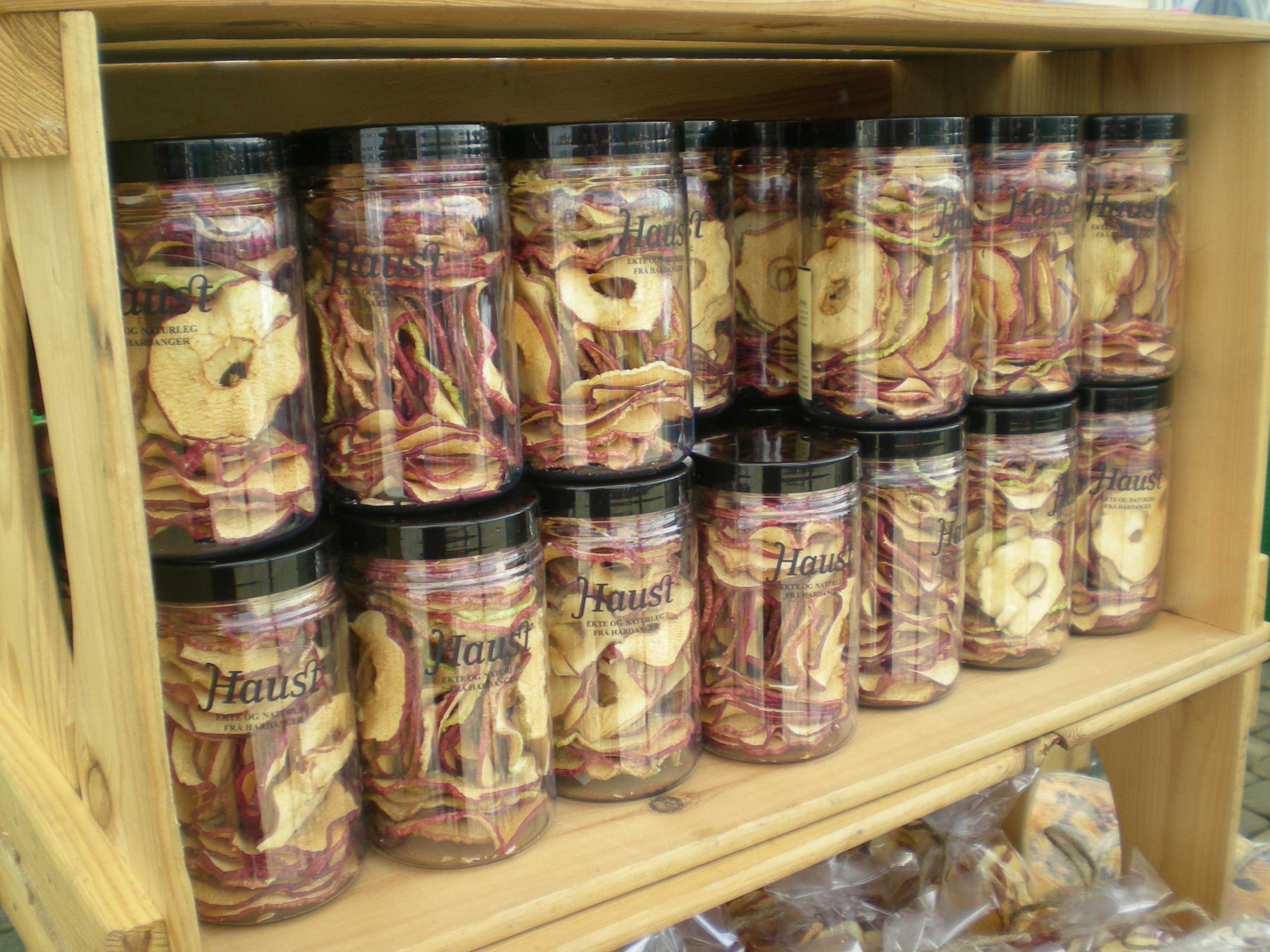 Tørka eple på glas